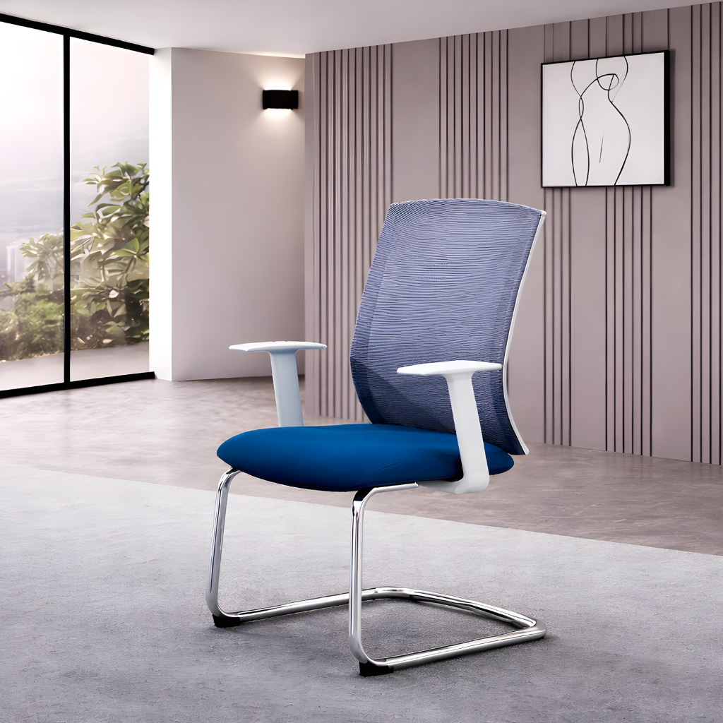 The Modern Visitor Chair combines comfort, durability, and contemporary styling to enhance any professional environment. Designed with a high-quality breathable mesh back, it promotes airflow to keep users cool throughout long discussions or meetings. The plush cushioned seat provides superior sitting comfort, while the ergonomic armrests offer additional support for a relaxed posture.