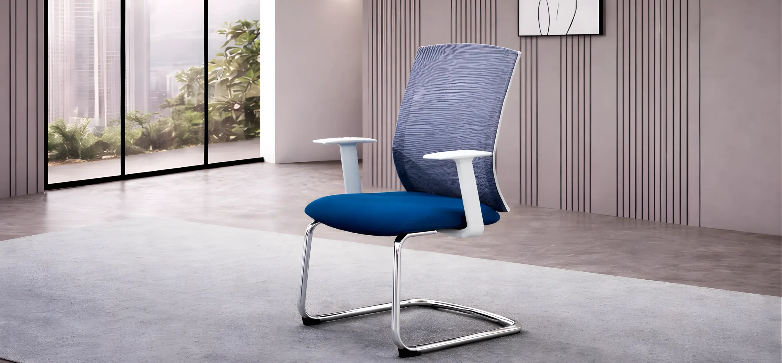 Its sleek chrome-finish sled base ensures stability and smooth floor contact, making it ideal for meeting rooms, conference spaces, reception lounges, training environments, and collaborative work zones. Built to complement modern office interiors with clean lines and refined finishes, this visitor chair balances aesthetics with practical performance.
