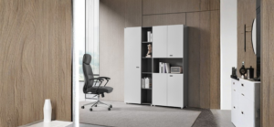 Its tall, structured frame maximizes vertical space, making it ideal for storing files, books, décor, awards, and office supplies. The dual-tone matte finish blends seamlessly with modern interiors, while the precision-built doors ensure smooth operation and long-lasting durability.