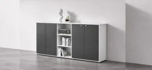 This modern storage cabinet offers a stylish and functional solution for organizing office essentials. Featuring spacious shelves and secure closed compartments, it blends sleek design with practical storage to keep your workspace clean, efficient, and visually appealing in any professional setting.
