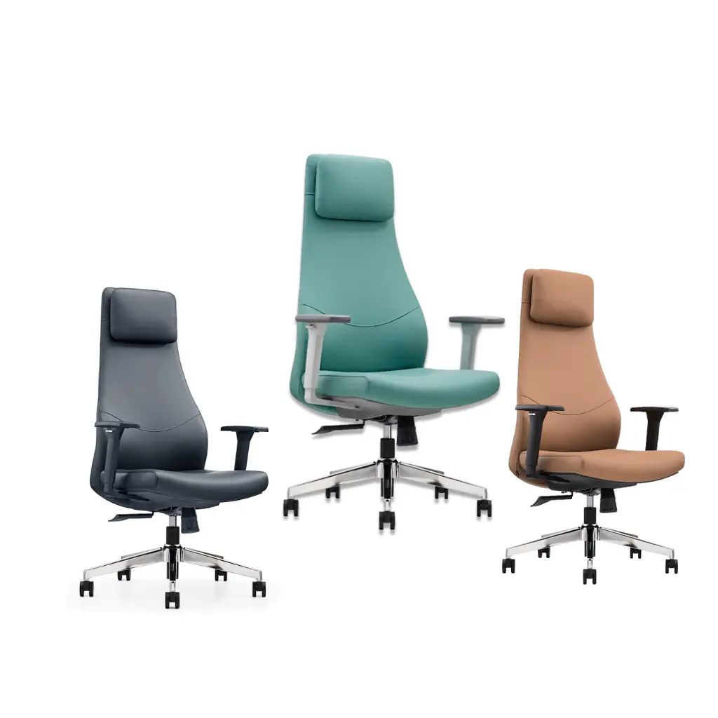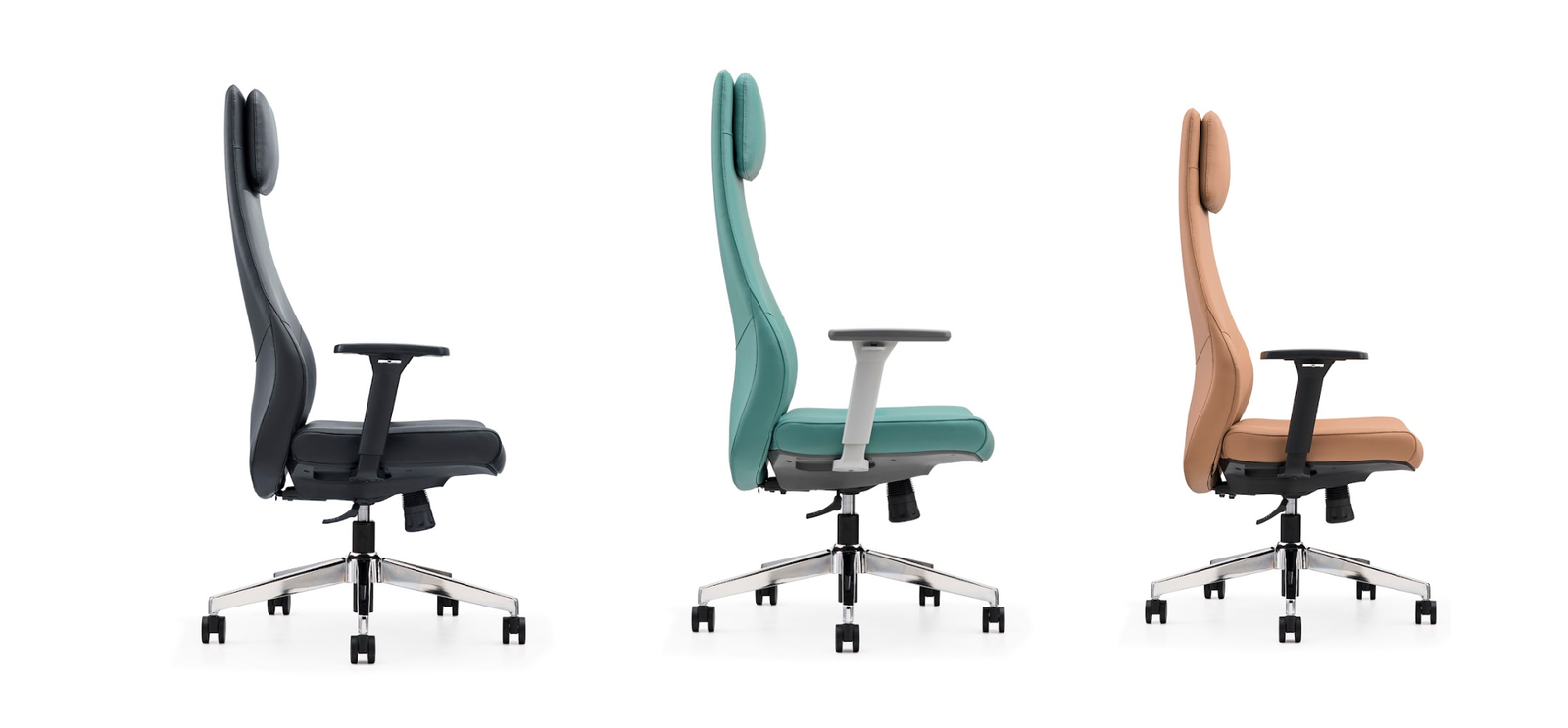 The 90054A Executive Chair Series is designed to deliver superior comfort, professional aesthetics, and all-day ergonomic support. Its high-back design provides excellent spine alignment, while the plush headrest and contoured seat ensure reduced fatigue during extended work sessions. Available in four refined color variants—Black, Aqua Green, Matcha Green, and Khaki Brown—the 90054A series brings a modern, stylish touch to corporate spaces, home offices, conference rooms, and reception areas.