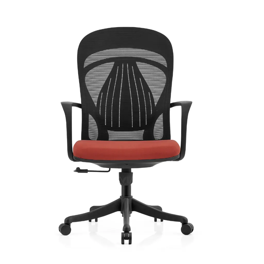 The B809 office chair combines ergonomic support with a clean, modern design. Its mesh backrest promotes airflow, helping reduce heat buildup during long working hours. The gently contoured back supports natural posture, while the padded seat ensures consistent comfort throughout the day. Fixed armrests provide stable support, and the adjustable height mechanism allows easy customization for different desk levels. Built on a sturdy five-star base with smooth-rolling castors, the B809 offers durability, stability, and effortless movement. It is a practical seating solution for offices, training rooms, and home workspaces.