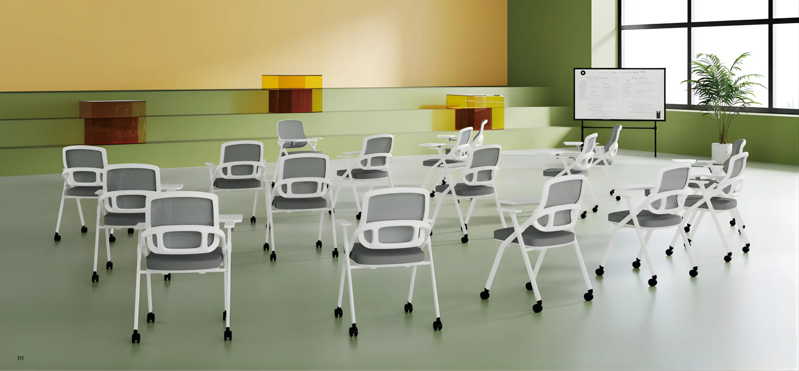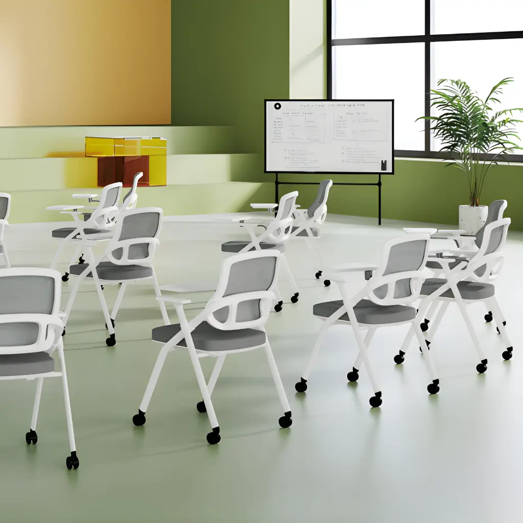 The D365 Training Chair is designed for modern classrooms, training rooms, and collaborative learning spaces. Featuring a compact design with an integrated writing tablet and smooth-rolling wheels, it allows easy movement and flexible seating arrangements. Ideal for educational and corporate environments, it combines comfort, mobility, and functionality.