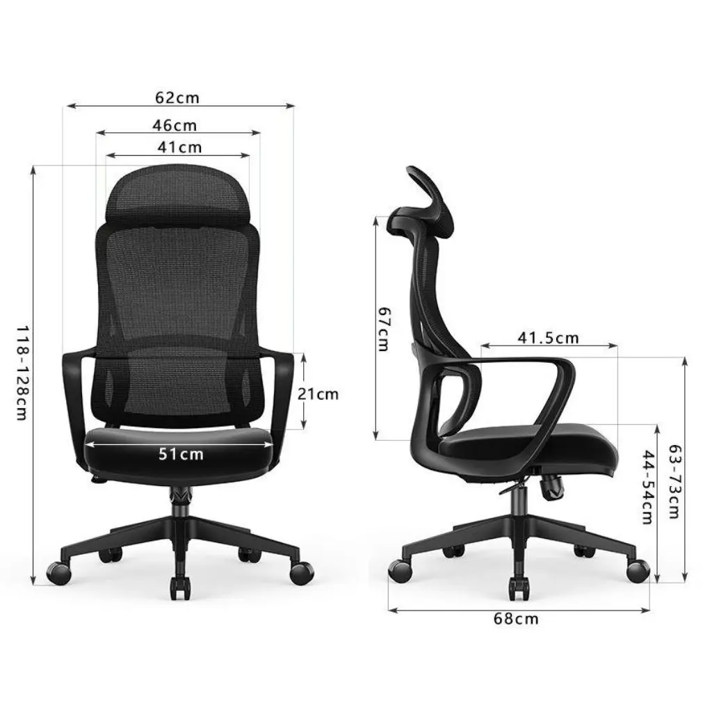 High back office swivel chair with the following specifications: