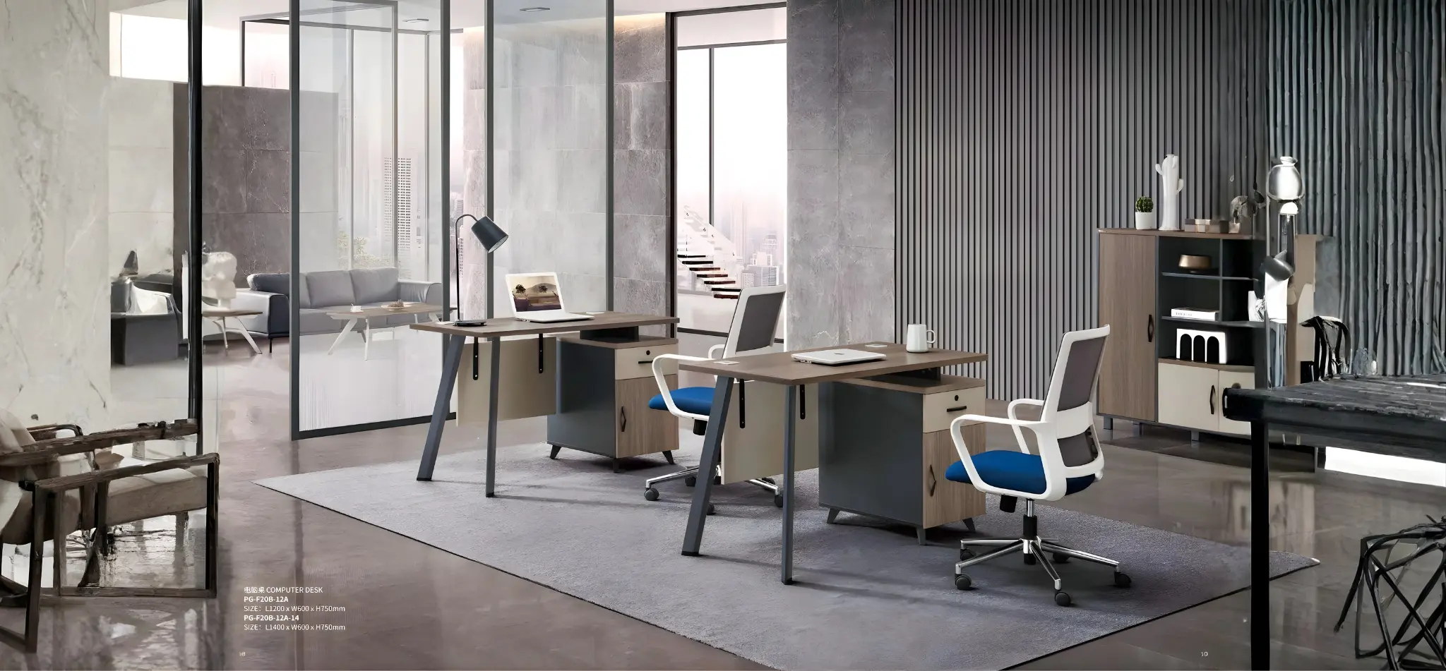 The PG-F20B Series Computer Desk offers a refined blend of modern aesthetics and practical functionality. Designed to enhance work efficiency, it features a wide tabletop for laptops, monitors, stationery, and daily work essentials. The elegant wood-finish surface combined with a muted body tone creates a contemporary look suitable for professional offices and home work setups.