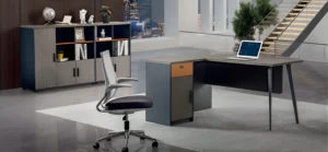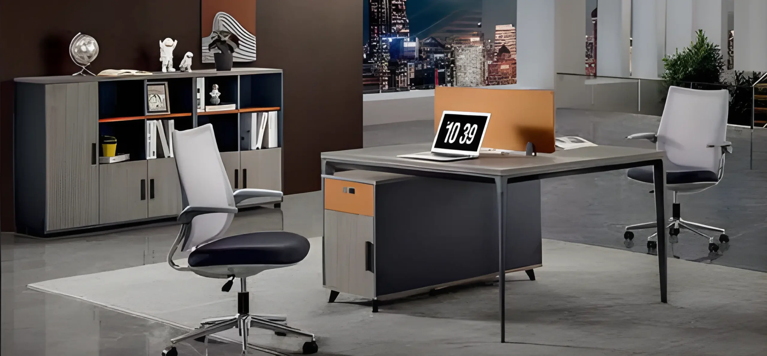 A practical storage unit is integrated beneath the desk, allowing you to keep important items easily accessible while maintaining a clutter-free surface. The subtle dual-tone finish adds sophistication, blending seamlessly with modern corporate environments, managerial cabins, coworking spaces, or premium home offices.