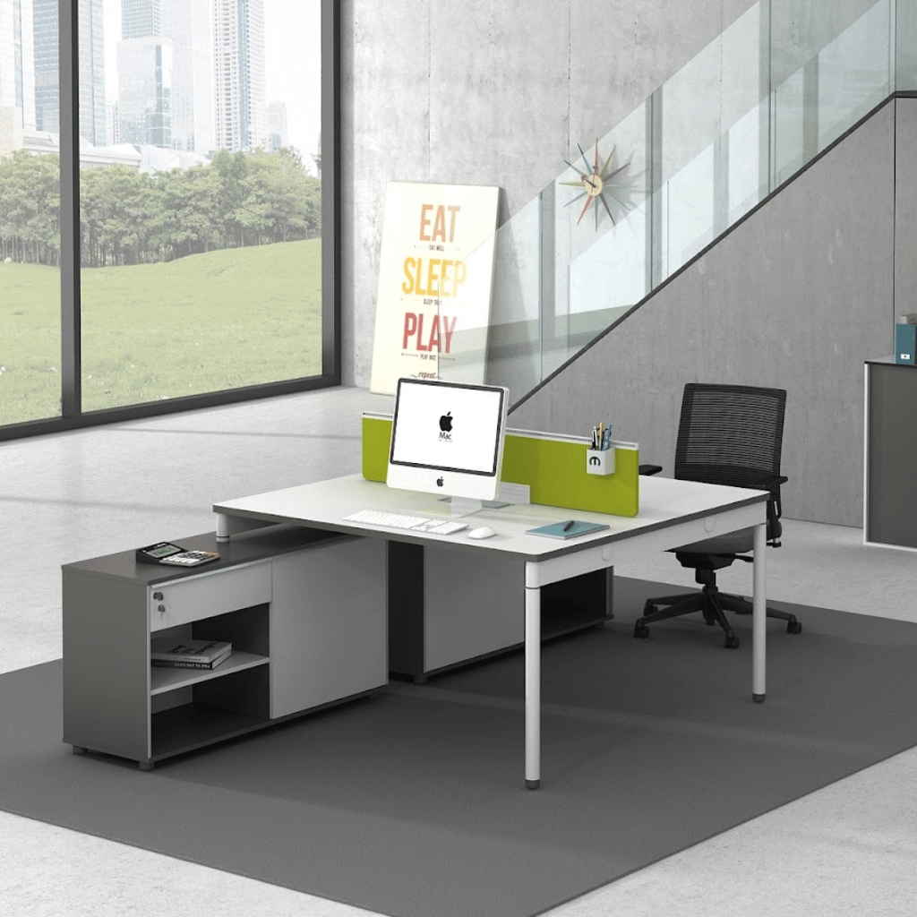 The Executive Workstation Set brings modern simplicity and optimized functionality into one elegant workspace solution. Its spacious tabletop provides ample room for computers, documents, and daily tasks, while the vibrant green privacy screen offers a refreshing pop of color and helps maintain focus during work hours.